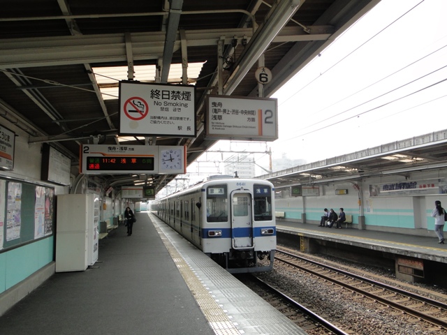 画像は乗ってきた東武鉄道の電車と、東向島(旧:玉ノ井)の駅。